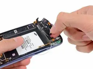 Схватите и извлеките шлейф динамика/кнопок/датчика освещённости из телефона.