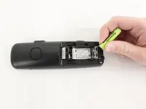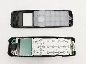 После разделения задней части с остальной частью устройства аккуратно положите ее в сторону. Будьте внимательны, чтобы не оторвать её полностью, так как существуют провода, соединяющие заднюю панель с трубкой.