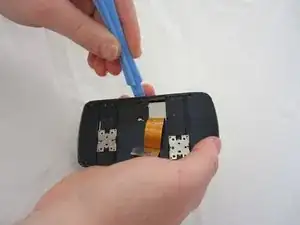 С помощью пластикового инструмента отцепите ЖК-дисплей от защёлок внизу.