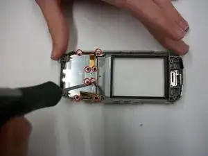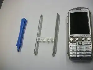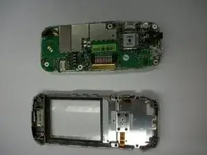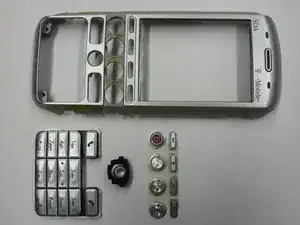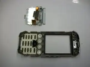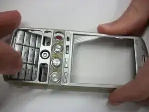 Отложите все кнопки и лицевую панель в сторону. Лицевая панель теперь отделена от остальной части телефона.