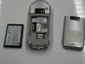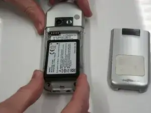 Отложите батарею и крышку батарейного отсека в сторону и поднимите телефон.