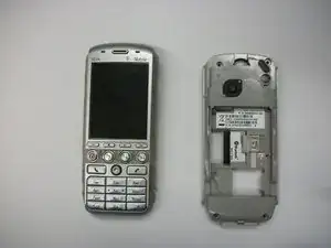 После освобождения защёлок разъедините заднюю часть телефона и переднюю половину.