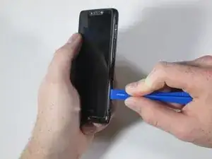 Просуньте пластиковый инструмент для вскрытия под нижний край телефона, чтобы отсоединить небольшую пластиковую накладку под логотипом Verizon.