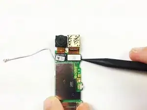 Используйте острый конец лопатки, чтобы отщёлкнуть антенный разъём из гнезда.