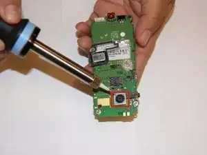 Определите, какую камеру вы собираетесь заменить. Если она ещё закреплена, снимите разъём для наушников, прогрев его паяльной насадкой до ослабления пайки.