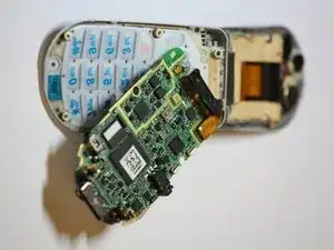 После разъединения половин телефона отложите плату логики, экран и нижнюю половину телефона в сторону.