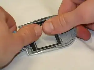 С открытым телефоном подденьте правую сторону шарнира отверткой. С небольшим усилием разъедините две половины.