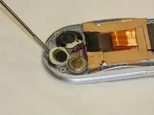 Динамики закреплены на клее. Будьте осторожны, чтобы не повредить компоненты — медленно подденьте снизу, пока динамики не выйдут.