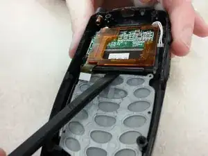 Используя лопаткy, подденьте плату цепи экрана из передней части корпуса телефона.