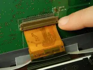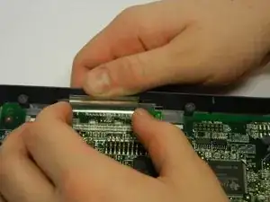 К плате и корпусу телефона всё ещё прикреплена коричневая плоская лента, поэтому пока не отрывайте плату полностью.