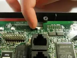 Сдвиньте среднюю чёрную защёлку в направлении нижней части изображения плоской отвёрткой.