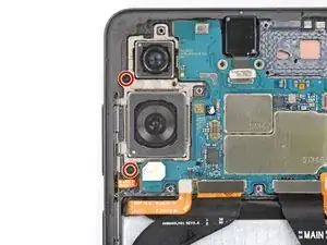 Используйте крестообразную отвертку Phillips, чтобы отвинтить два винта длиной 2,8 мм, фиксирующих задние камеры.