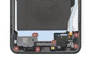 Используйте крестообразную отвертку Phillips, чтобы отвинтить пять винтов длиной 2,8 мм, фиксирующих динамик уха.