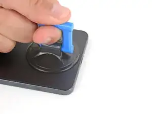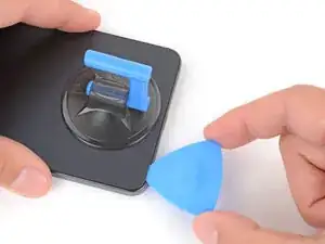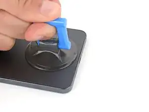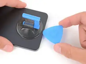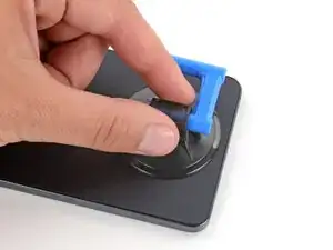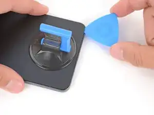 Сильной, ровной тянущей силой поднимите присоску до образования зазора между крышкой и рамкой.