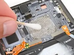 Используйте ватную палочку, чтобы очистить и удалить оставшуюся теплопроводящую пасту с паровой камеры, при необходимости повторно смачивая палочку спиртом.