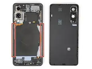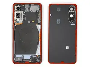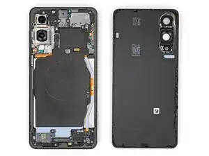 Клей-уплотнитель для замены задней крышки может быть нанесён либо на рамку, либо на заднюю крышку. Используйте вырезы и контуры, чтобы определить, как он лучше совмещается. Если он совпадает с задней крышкой, следуйте этому руководству. Если он совпадает с рамкой, используйте это руководство.
