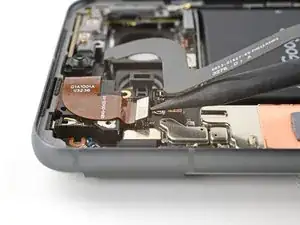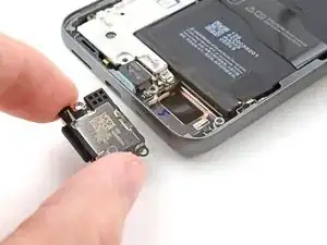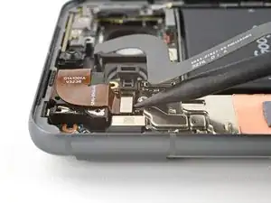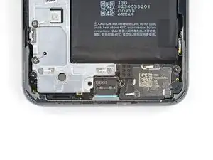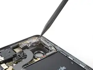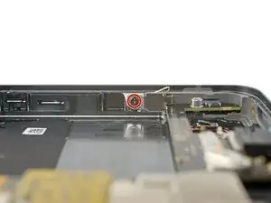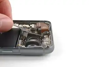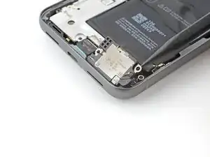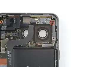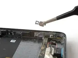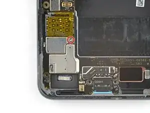 Используйте отвертку T3 Torx, чтобы выкрутить 2,5 мм винт 3IP Torx Plus, фиксирующий заземляющую скобу на нижнем правом краю телефона.