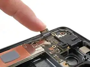Кабель экрана находится чуть менее чем на половине левого края телефона. Будьте очень осторожны здесь, чтобы не порвать кабель.