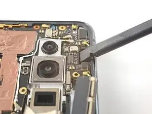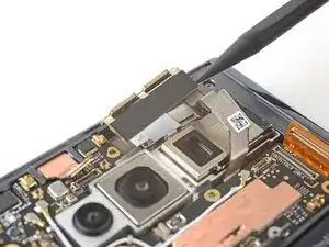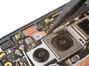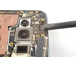 Используйте плоский конец лопатки, чтобы отжать и отключить пресс-коннекторы широкой, ультраширокой и телефото-камер.