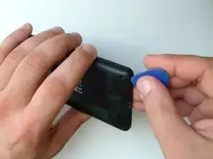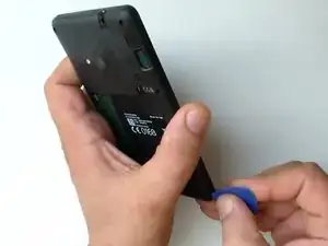 Пластиковым инструментом для вскрытия отделите заднюю крышку от средней рамки.