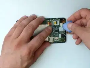Шлейф платы зарядного разъёма — снимите пену и ленту, затем поднимите чёрный фиксатор перед тем, как аккуратно вынуть шлейф.