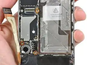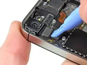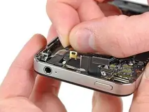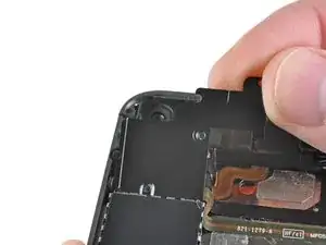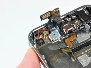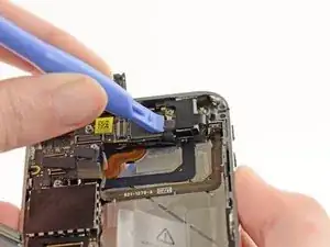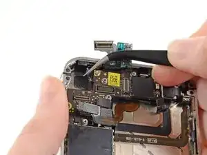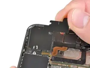 Приподнимите небольшую заземляющую скобу от платы и снимите её с iPhone.