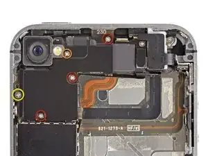 Будьте осторожны, чтобы не поцарапать заднюю часть сборки дисплея после удаления задней камеры.