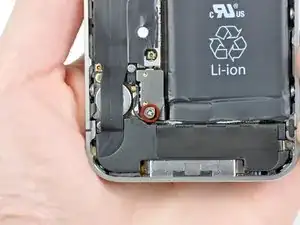 Выкрутите винт Phillips длиной 1,6 мм, фиксирующий контакт давления на плате логики рядом с вибромотором.