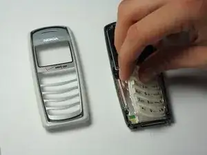 Сняв лицевую панель, аккуратно оторвите резиновую клавиатуру и удалите её.