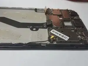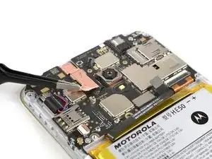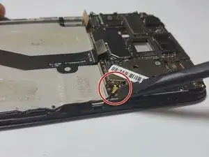 Используйте пластиковую лопатку, чтобы приподнять и отсоединить шлейф антенны от платы. Шлейф антенны должен остаться прикреплённым к корпусу телефона.