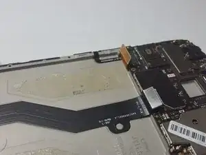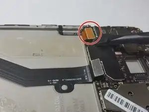 Используйте лопатку, чтобы приподнять и отсоединить шлейф ЖК-экрана от платы.