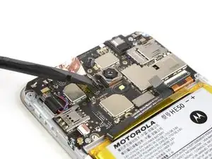 Используйте лопатку, чтобы приподнять и вынуть плату из телефона.