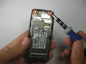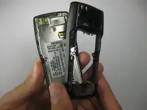 Ввведите плоский конец лопатки в щель прямо под надписью «Nokia» на задней части телефона.