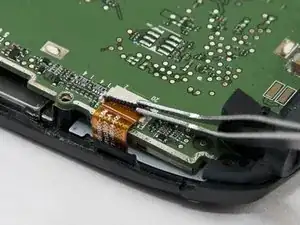 С помощью пинцета поднимите чёрную пластиковую защёлку, закрывающую маленький ленточный кабель.
