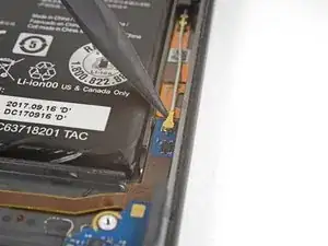 Используйте плоский конец лопатки, чтобы отсоединить разъём аккумулятора.
