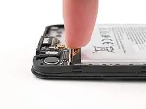 Отодвиньте разъём-защёлку соединительного кабеля в сторону аккумулятора, чтобы освободить место для платы зарядки на следующем шаге.