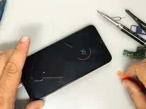 Используйте пластиковый инструмент, чтобы снять плату зарядки.