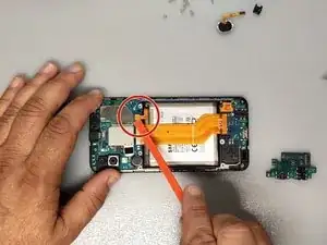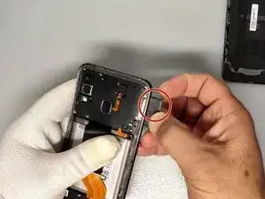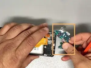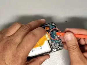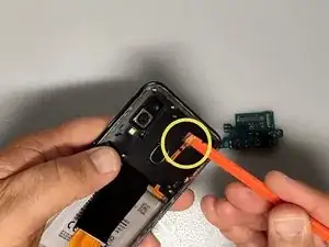 Используйте пластиковый инструмент, чтобы отделить плату зарядки от рамки.