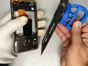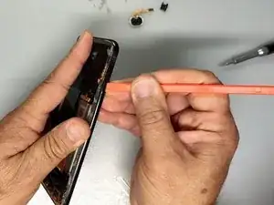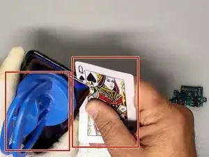 Используйте лопатку из пластика (или игральную карту), присоску и изопропиловый спирт, чтобы отделить заднюю крышку.