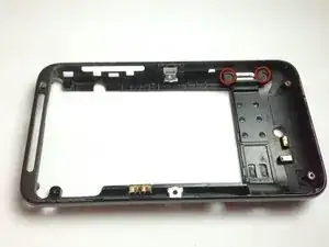 Снимите два винта Phillips в правом нижнем углу задней рамы.