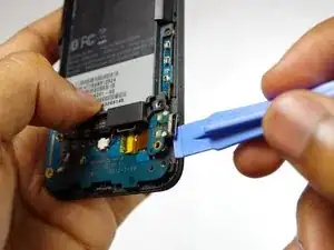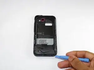 Используйте пластиковый инструмент для открытия, чтобы снять заднюю крышку, вставив инструмент в обозначенное пространство и надавив на ручку инструмента.