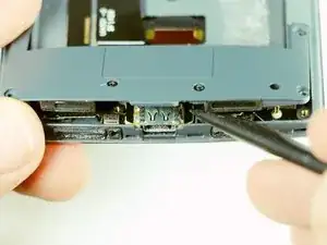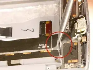 Теперь, когда у нас есть доступ к USB-порту, используйте плоский конец лопатки, подденьте его от разъёма и освободите от дочерней платы.