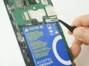 С помощью пинцета вытяните разъем аккумулятора из гнезда.