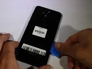 Используйте тонкий пластиковый инструмент, чтобы снять заднюю крышку телефона. После того как пластиковый инструмент начнет отдирать заднюю крышку, проведите им вдоль краев телефона, чтобы отделить клей, удерживающий заднюю часть. Как только все края телефона будут отсоединены, поднимите заднюю крышку.