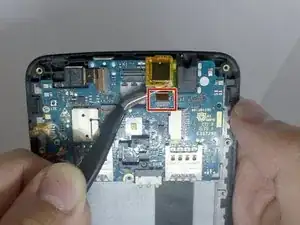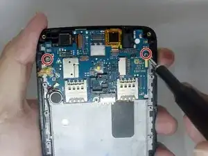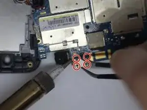 Снимите два винта Phillips #00 длиной 3 мм с материнской платы.