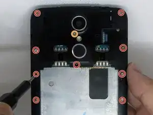 Снимите один винт Phillips #0 длиной 5 мм под камерой.