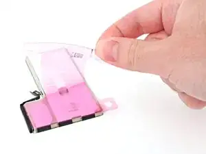 Если чёрная пластиковая прокладка под аккумулятором не вышла вместе с громкоговорителем, пропустите этот шаг.