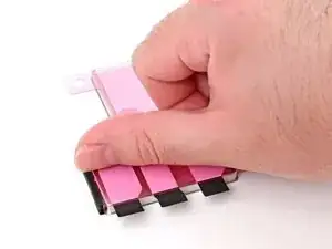 Используйте лопатку или пальцы, чтобы приподнять язычок, соединённый с большой передней подложкой. Язычок часто находится в углу подложки.