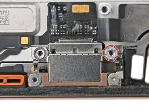 Используйте крестовую отвёртку, чтобы установить винт длиной 1,9 мм, фиксирующий Taptic Engine, расположенный на его правом краю.