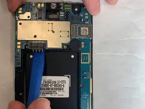 Используя пластиковый инструмент для вскрытия, отделите плату от задней рамы и извлеките её из устройства.